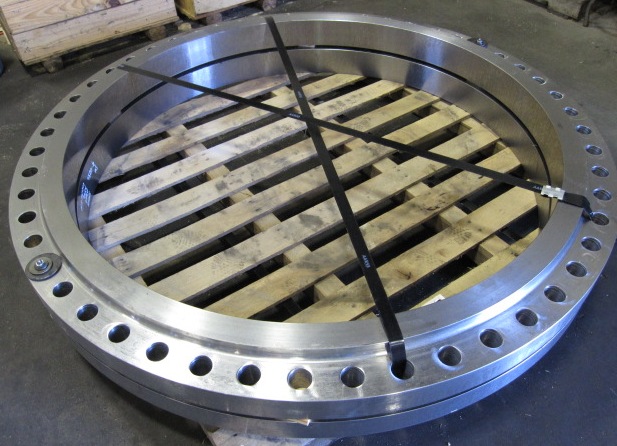 Standard ASME B16.47 covers flanges through NPS 60. Beyond that, flanges up to 200 inches or more can be custom manufactured as ring-rolled forgings or fabricated from plate per customer specifications.